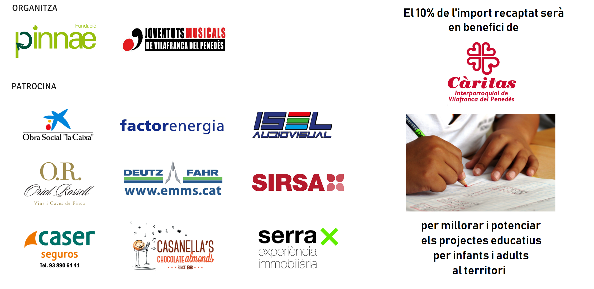 El MUSiCVEU és un festival de música solidari que neix l’any 2015 gràcies a la suma de sinèrgies entre la Fundació Pinnae i Joventuts Musicals de Vilafranca i que enguany destina part de la seva recaptació als programes educatius de Càritas Interparroquial de Vilafranca.