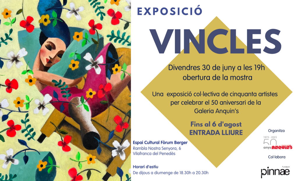 El pròxim divendres 30 de juny a les 19h a l’Espai Cultural Fòrum Berger tindrà lloc l’obertura de la mostra sota el títol VINCLES que vol ser un homenatge a la galeria.
